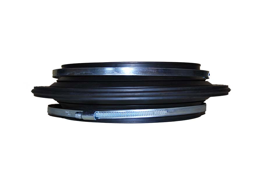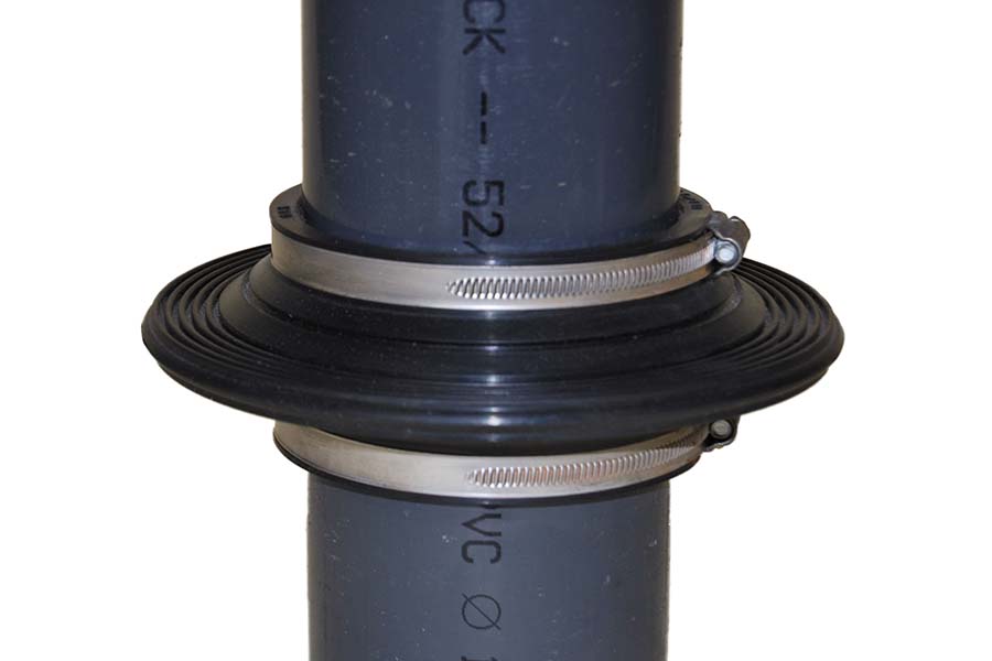 Dichtung mit verlängerter Schlauchschelle zur Montage an Gusseisen- oder Steinzeugrohren.